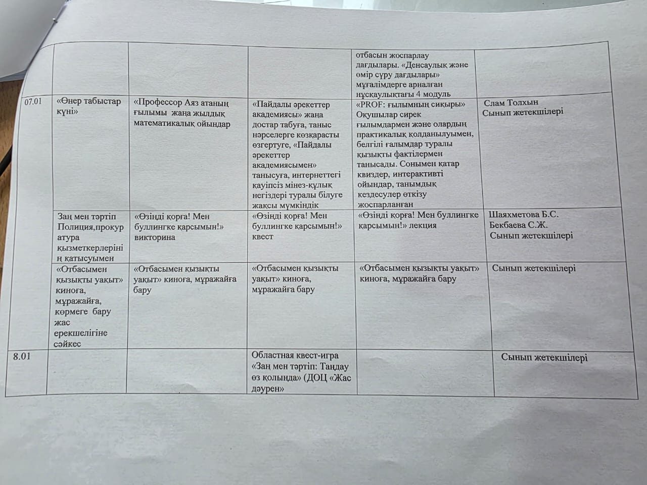 Қысқы демалыс уақытында оқушылармен жүргізілетін жұмыс жоспары